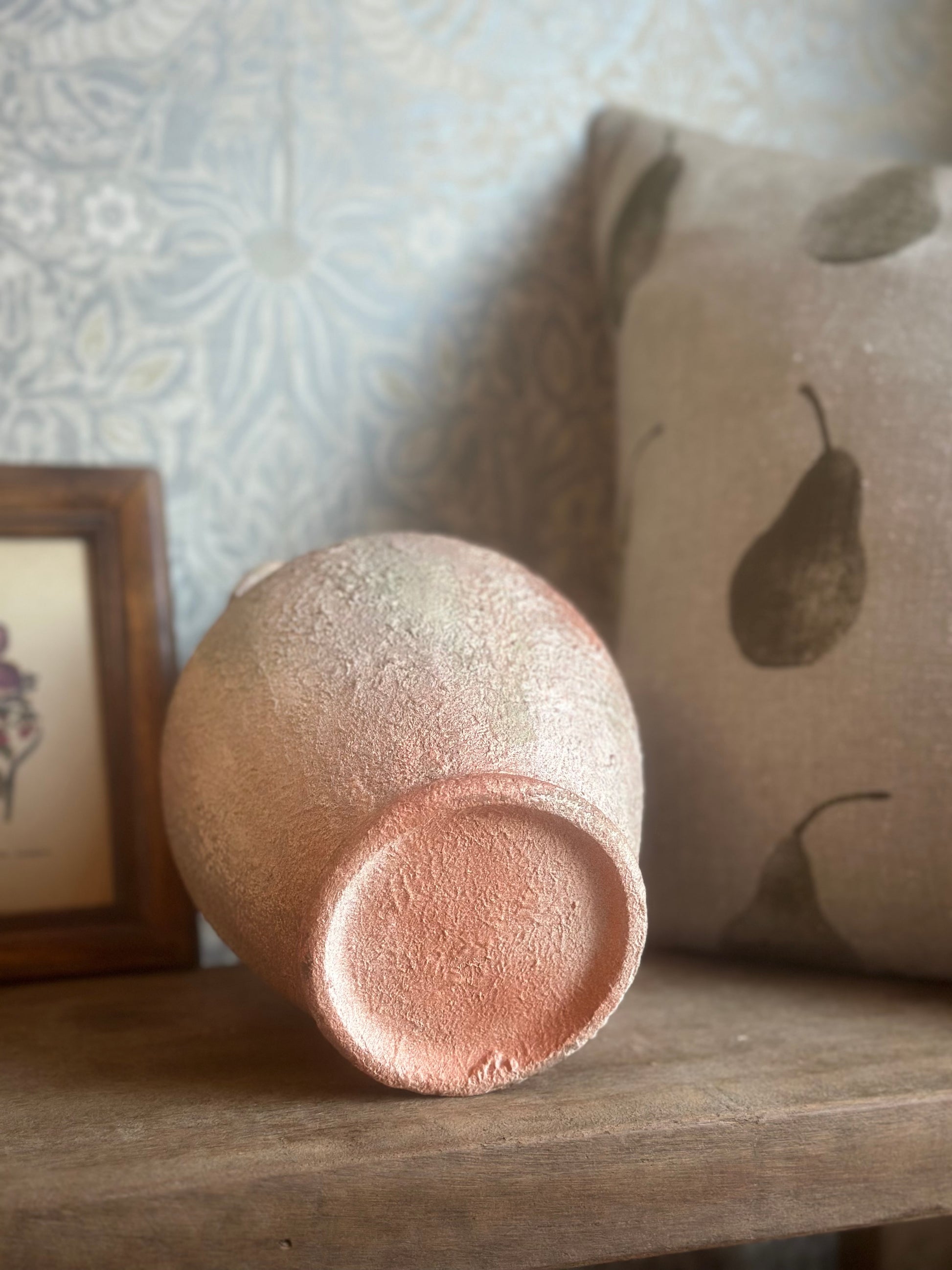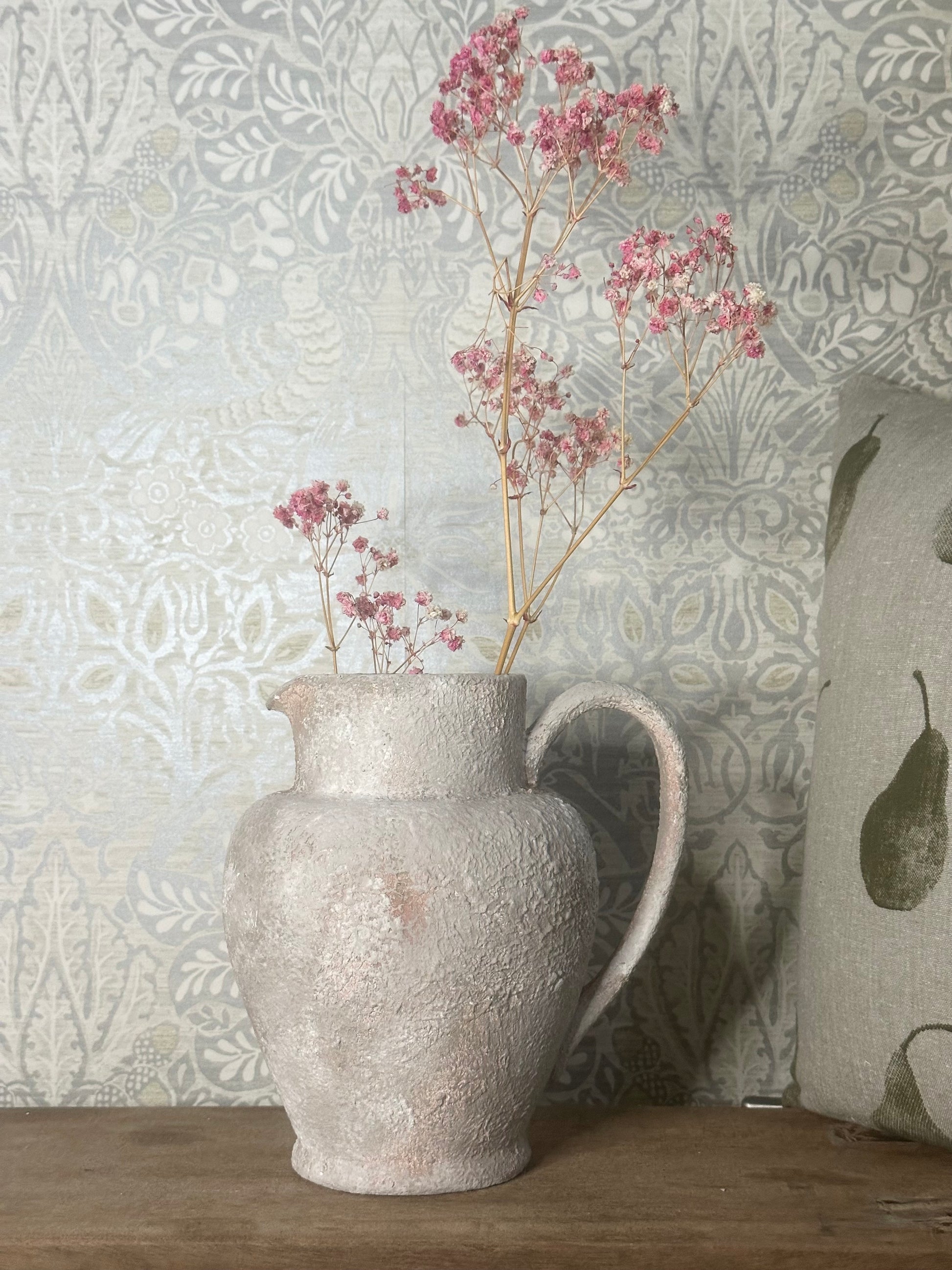 Add a touch of rustic charm with our hand painted textured terracotta jug vase.