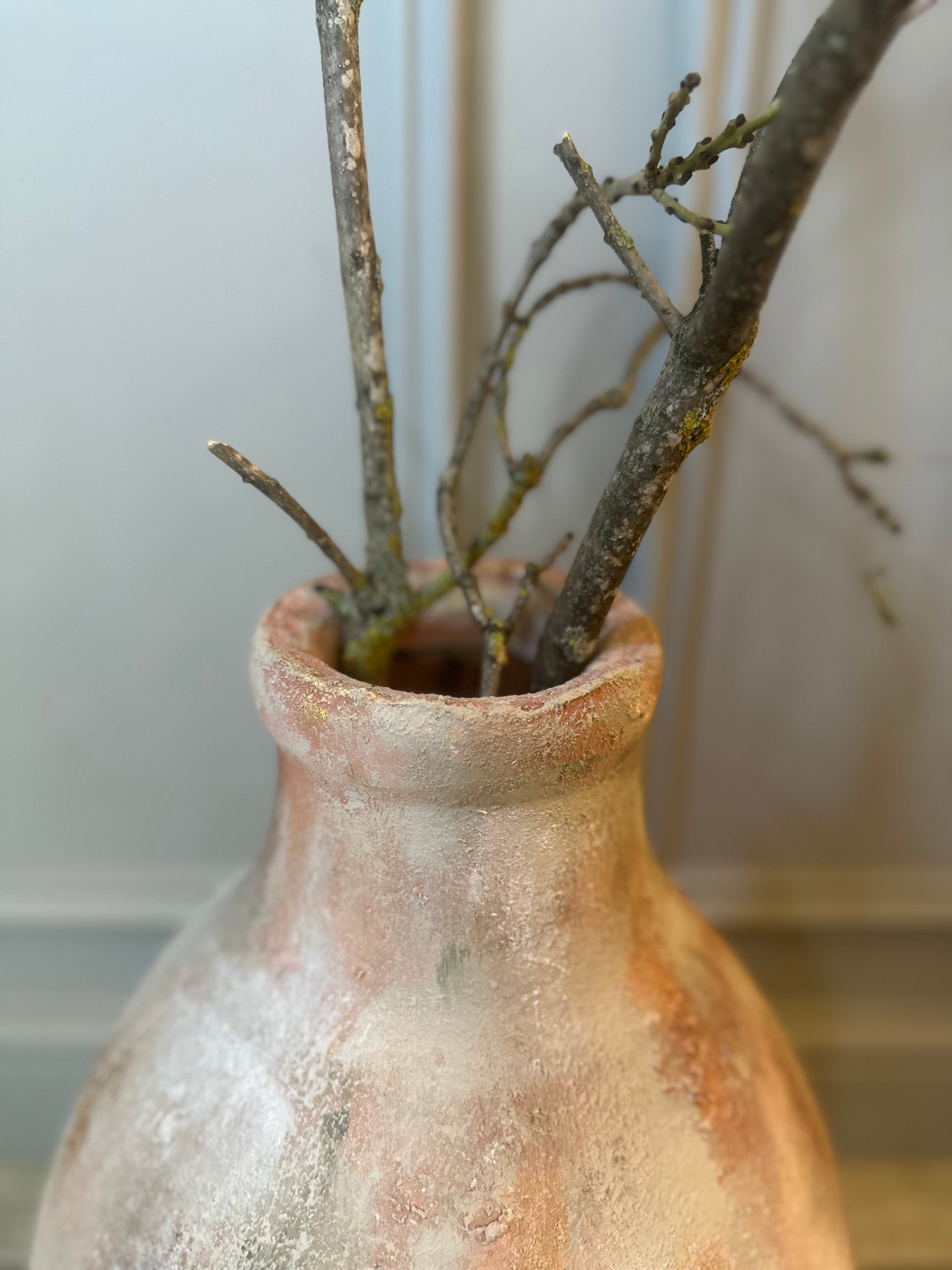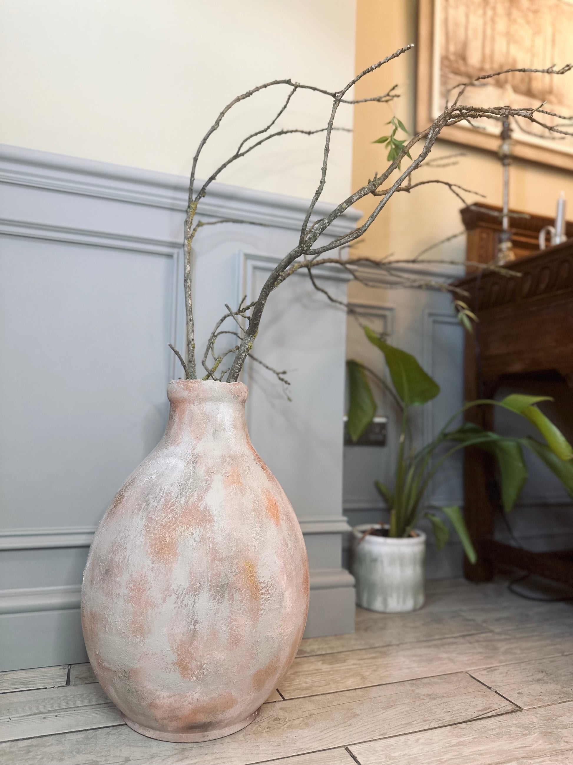 Expertly handcrafted and hand painted, this Large Heavy Rustic Terracotta Vase adds a touch of rustic charm to any space.