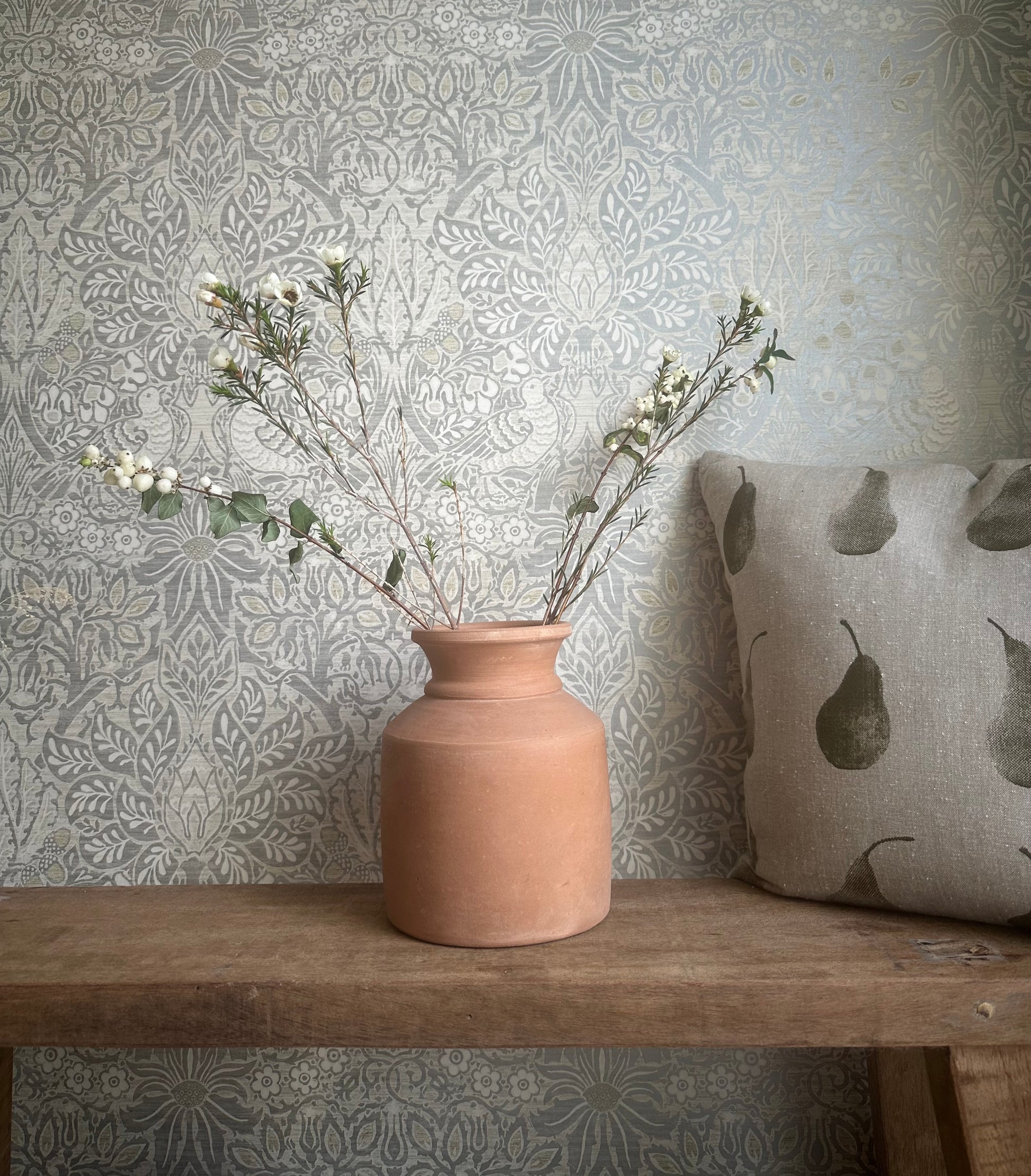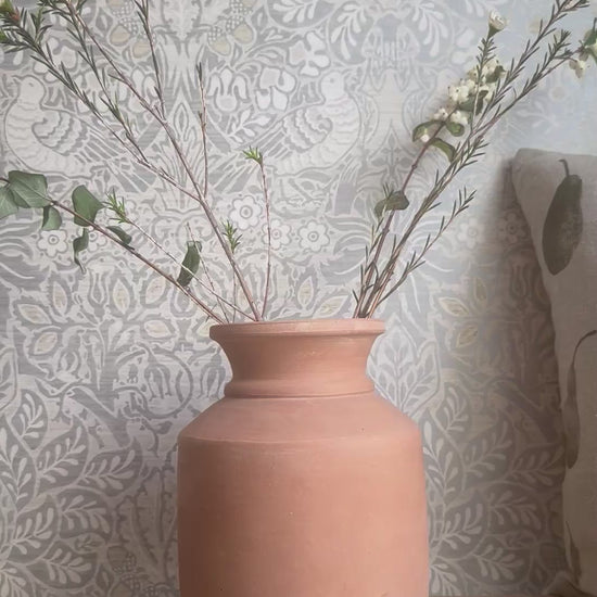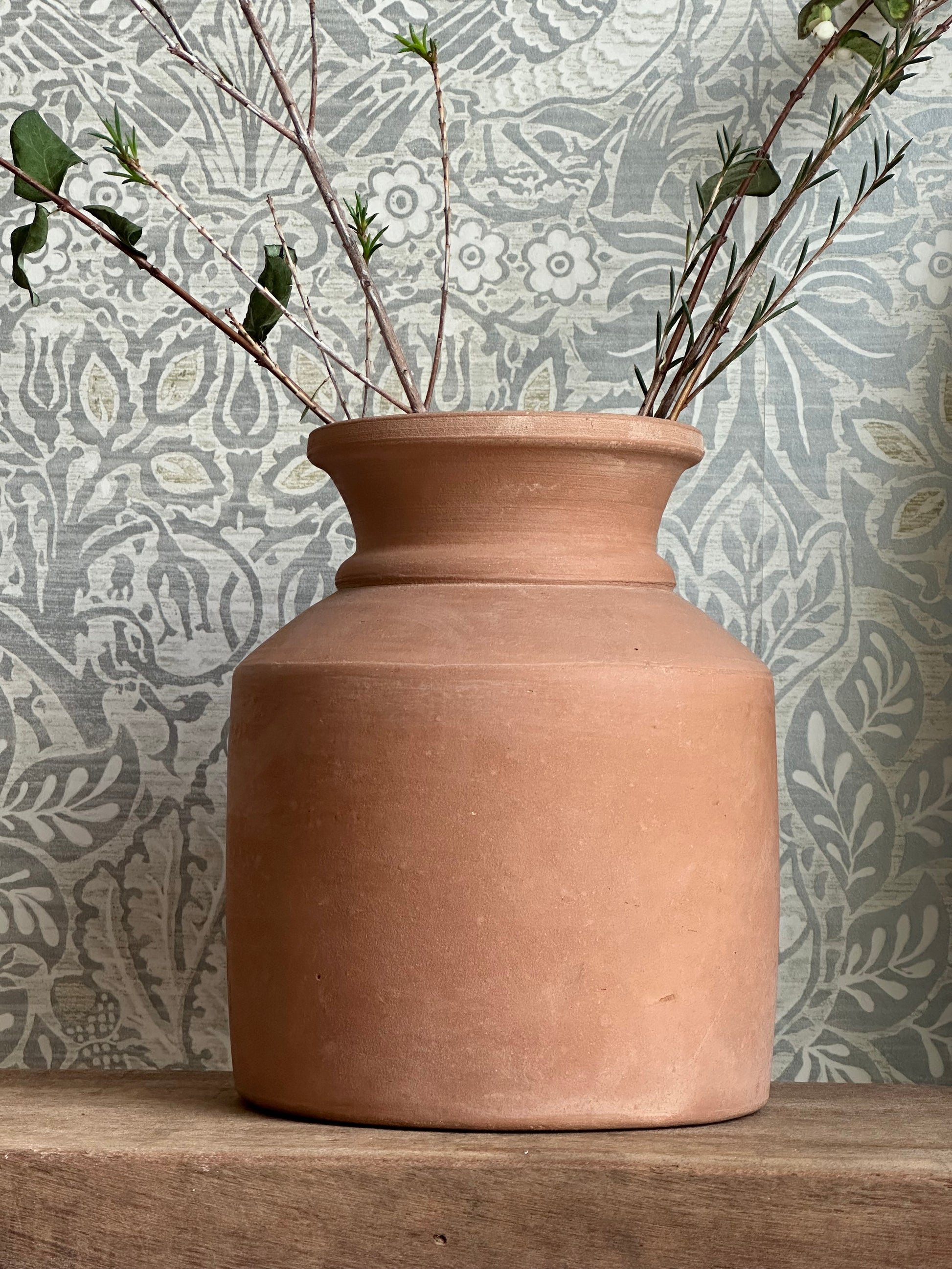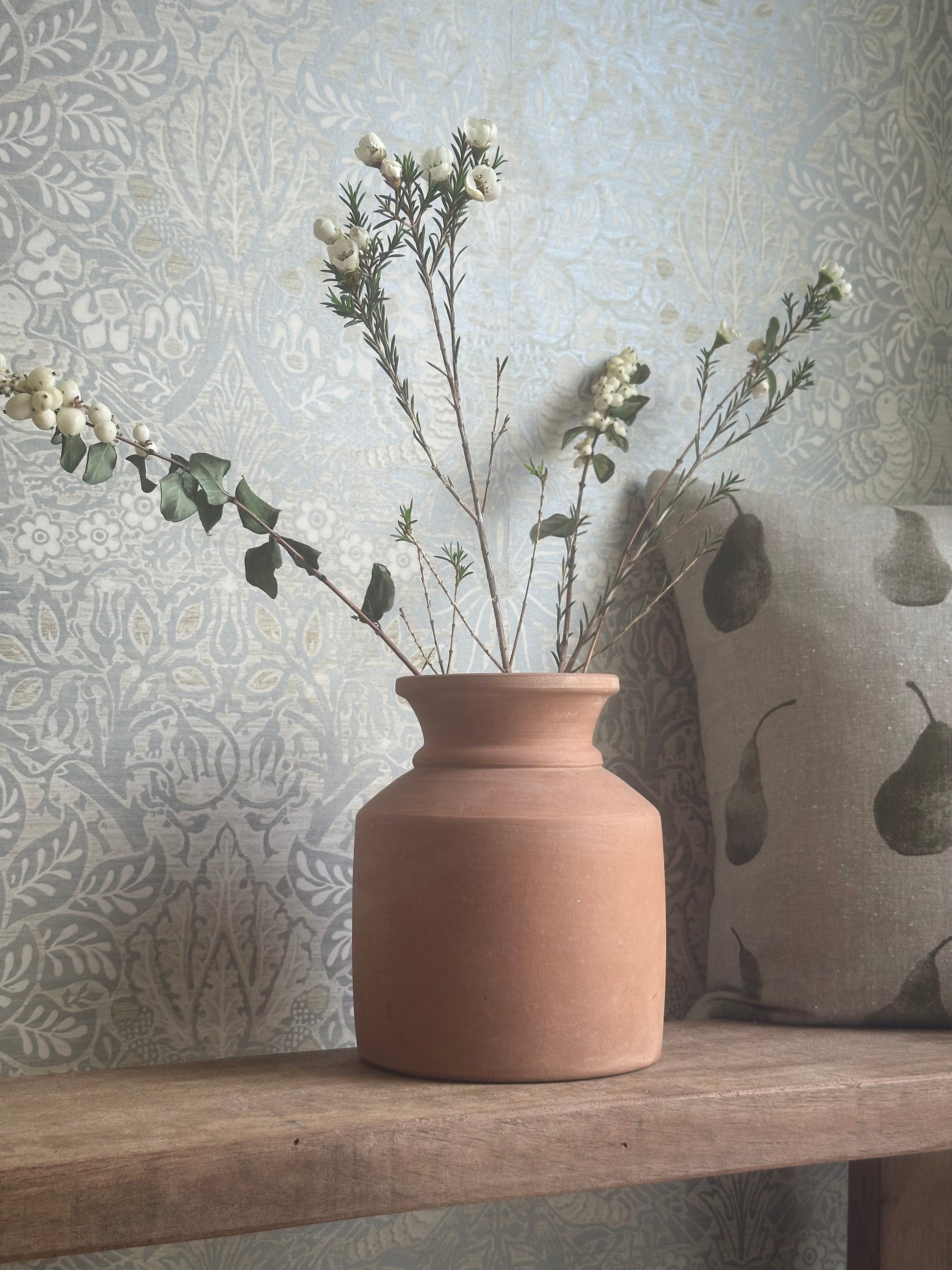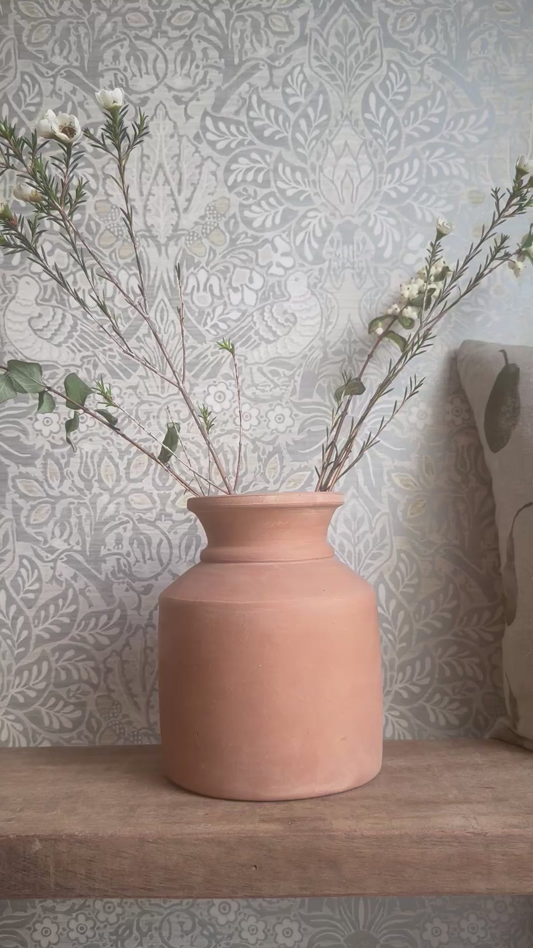 Inspired by ancient craftsmanship, this terracotta inkwell vase adds a touch of timeless elegance to any space.