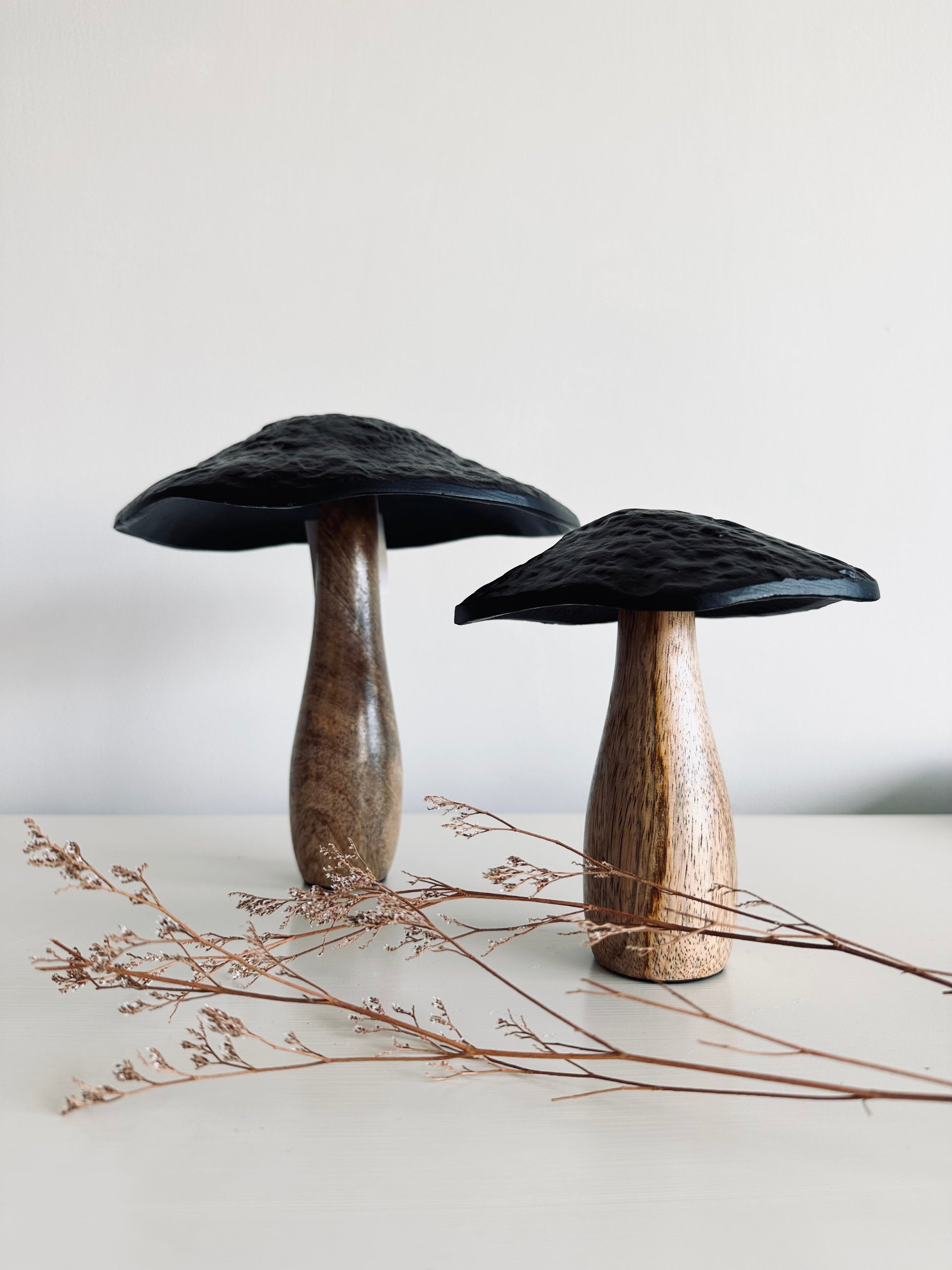 Medium Black Wooden Mushroom Toadstool