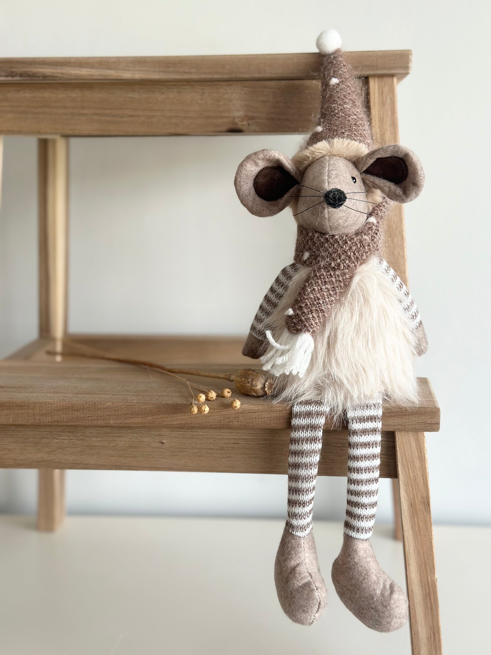 A large charming cute fabric mouse decoration in natural colours.