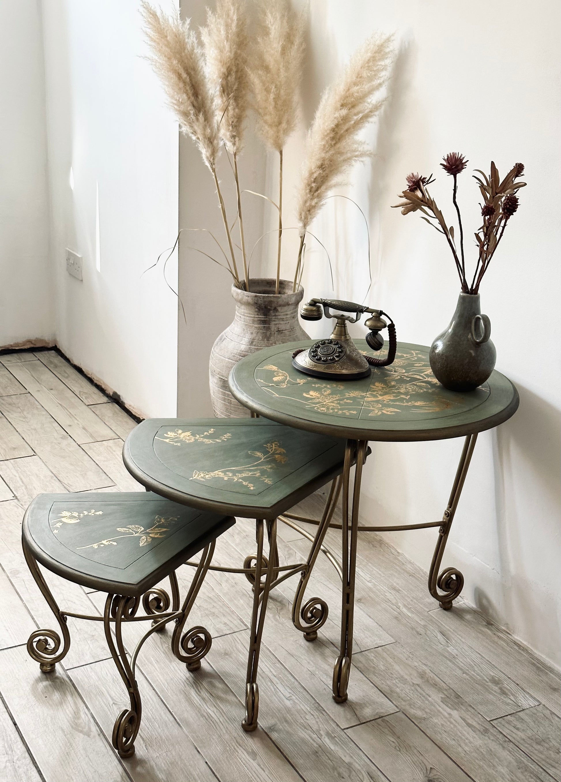 These tables have been refinished with utmost, love, care and attention using only high end products. As with all vintage pieces these may show slight signs of previous use, which we feel all add to the character and charm of the piece.