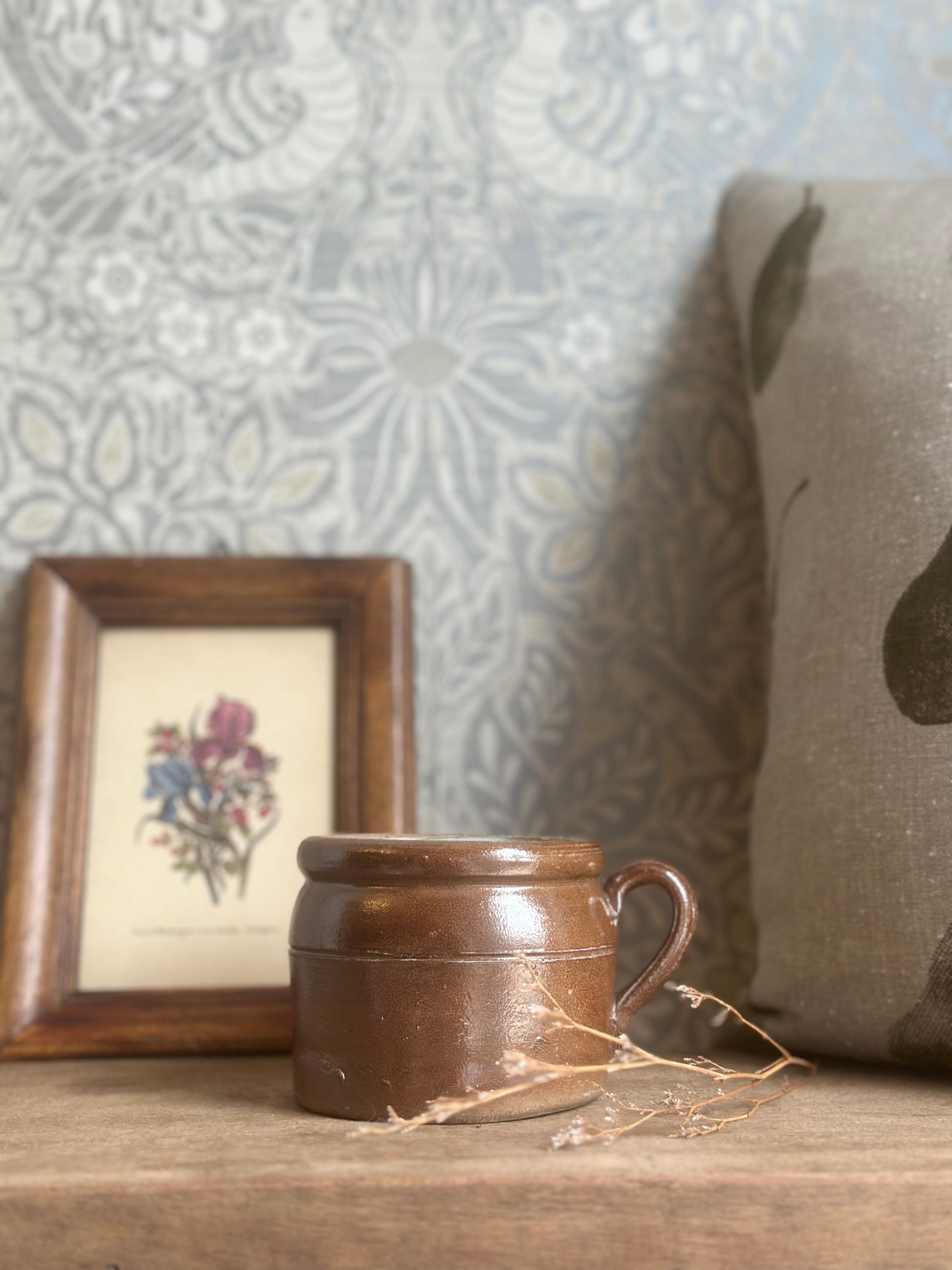 This Small Antique French Terracotta Confit Glazed Pot is perfect for adding a rustic touch to your home decor.