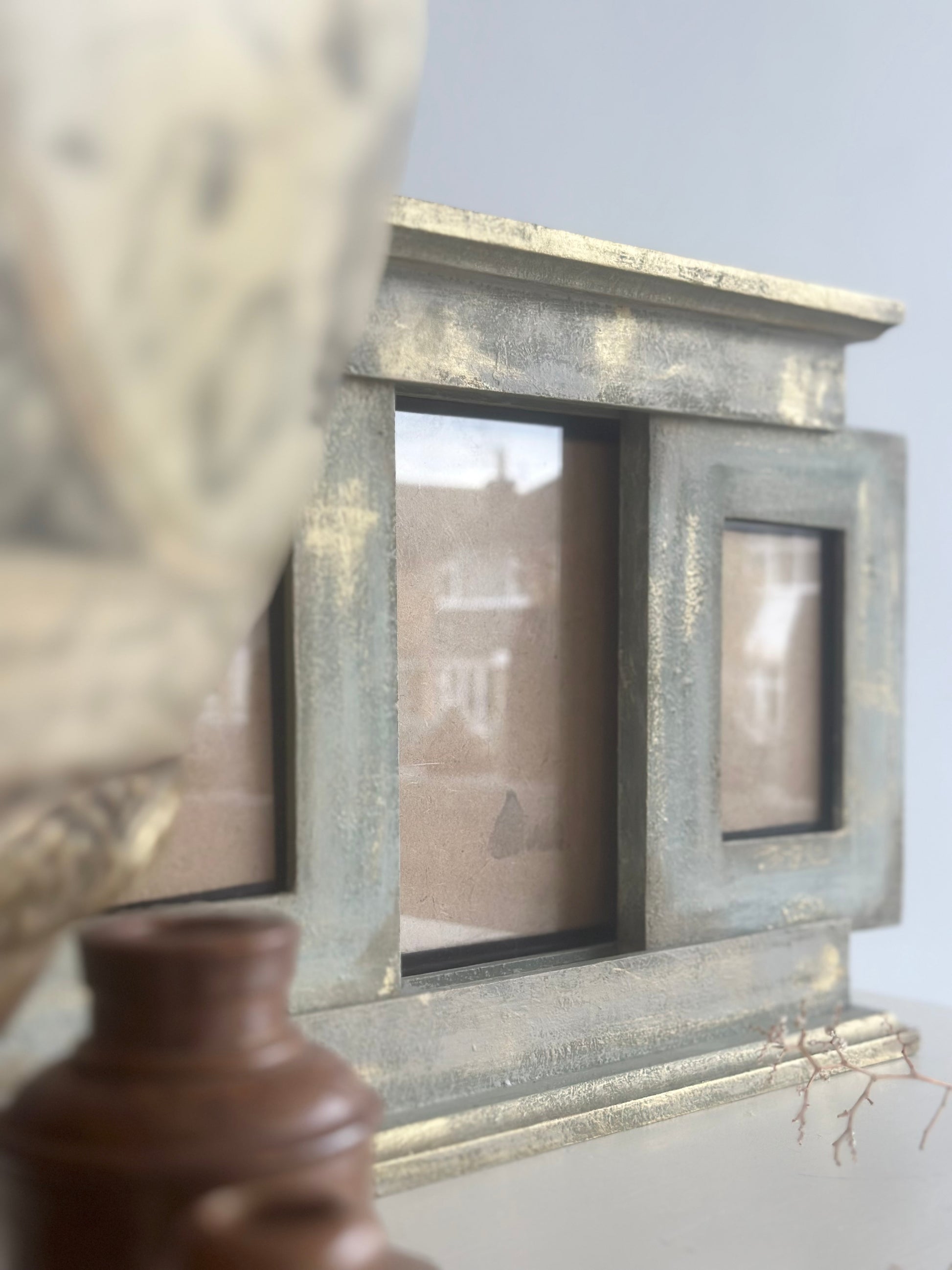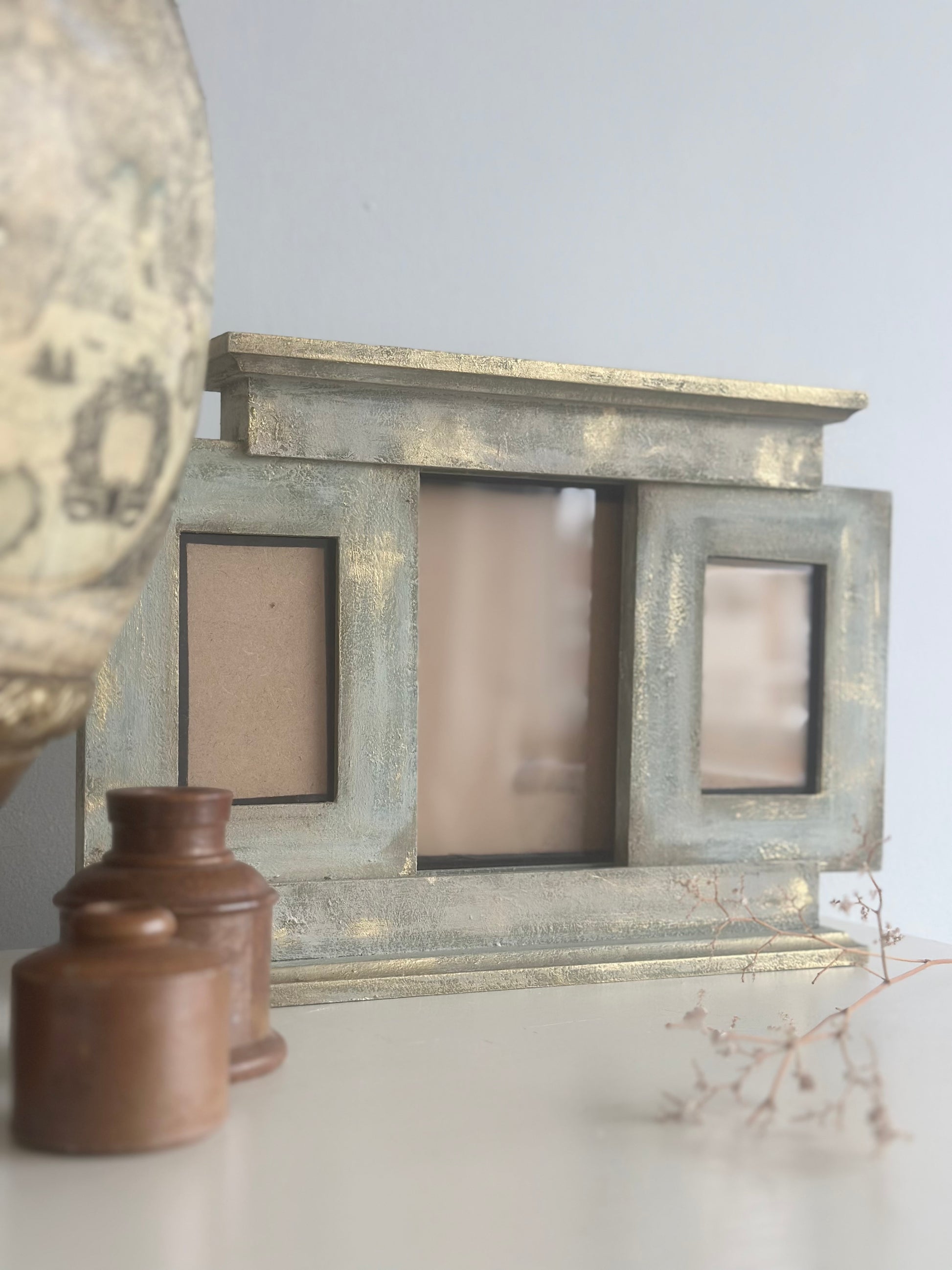 This hand-painted frame combines vintage design with modern convenience, featuring three frames in one for added versatility.
