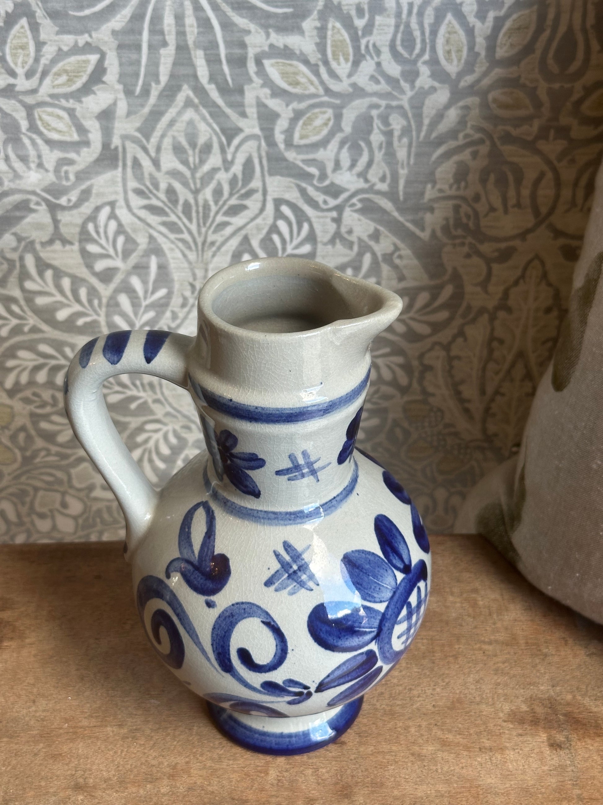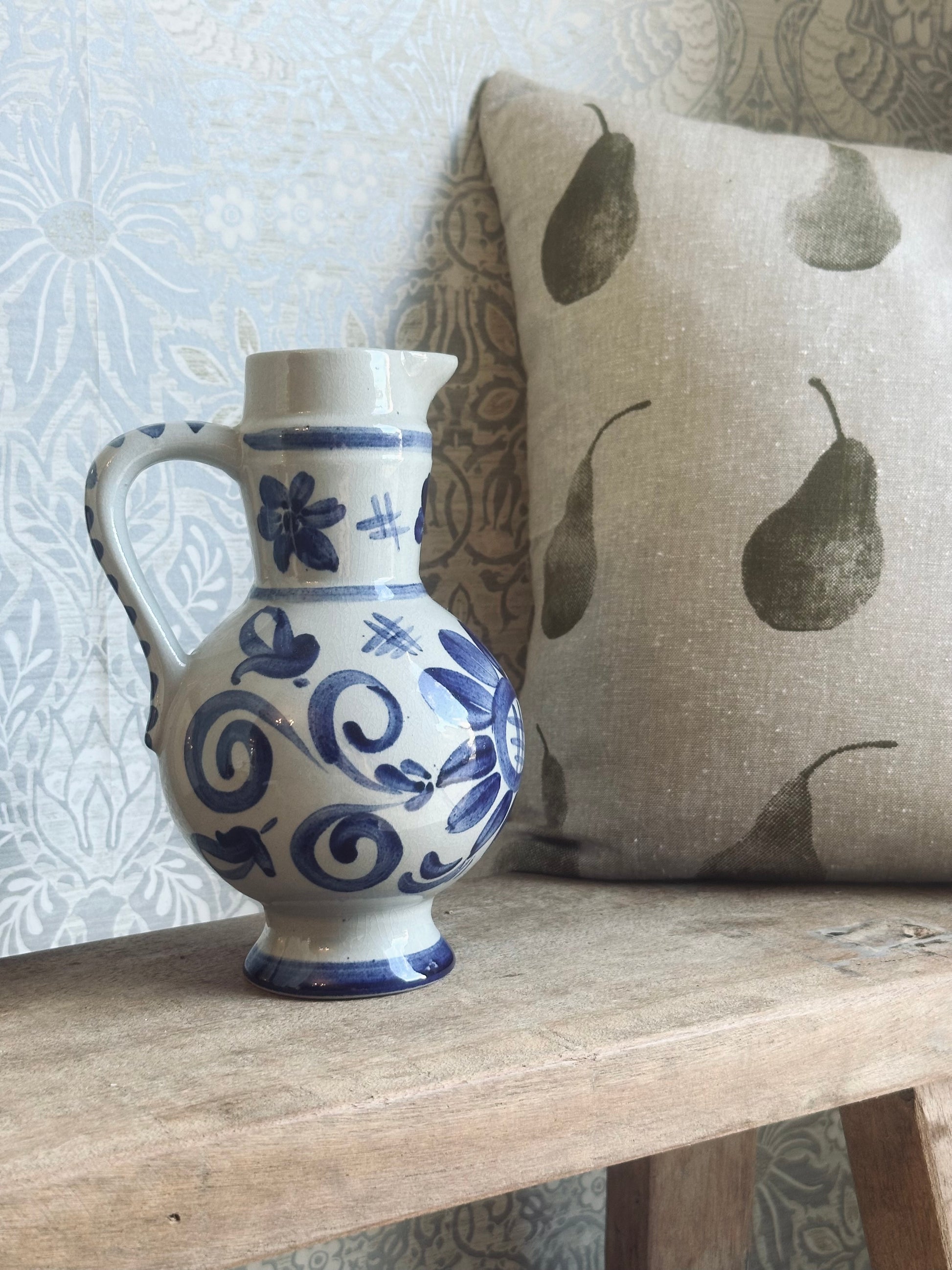This vintage blue and white pottery vase adds a touch of charm to any home décor.