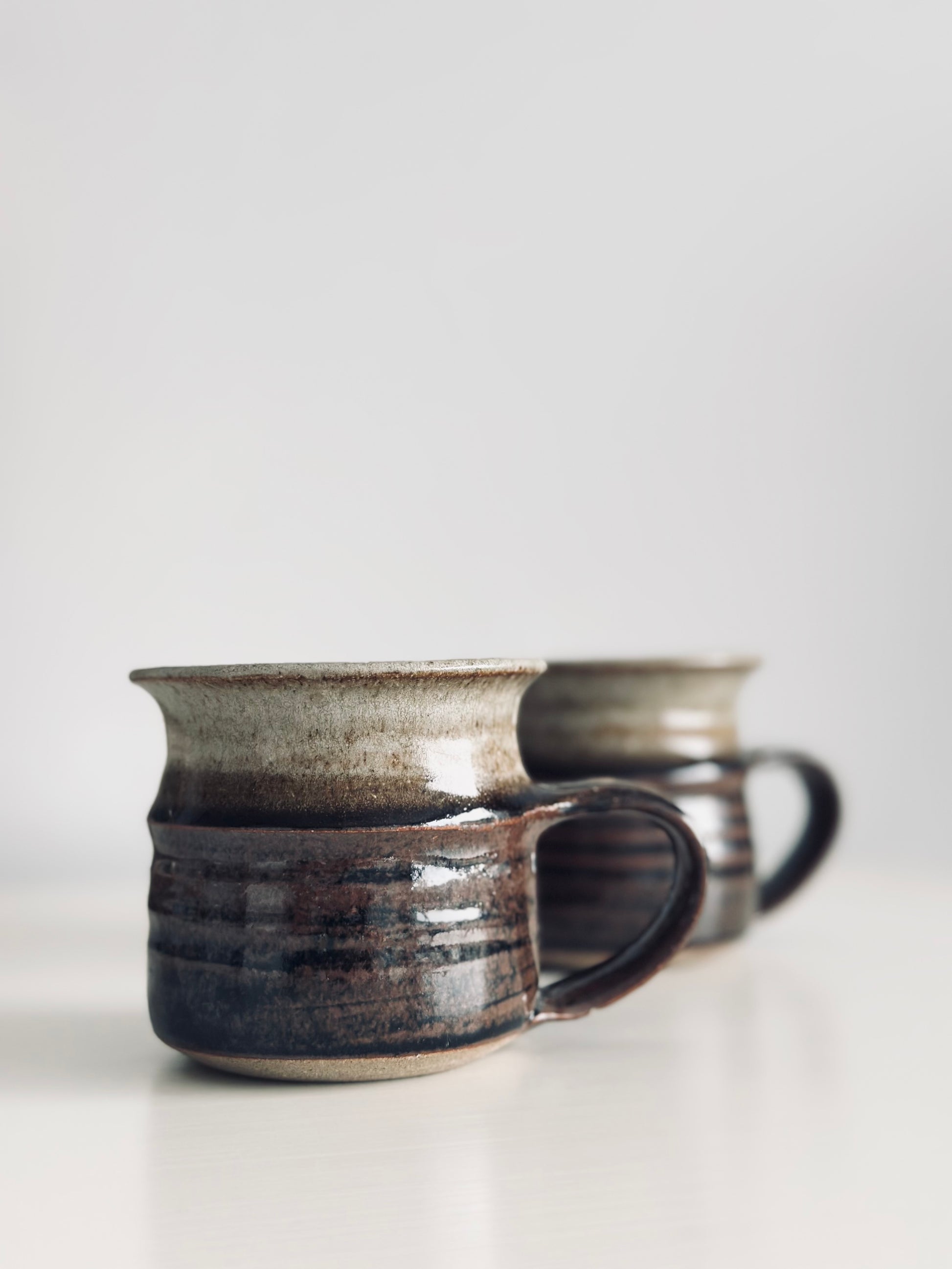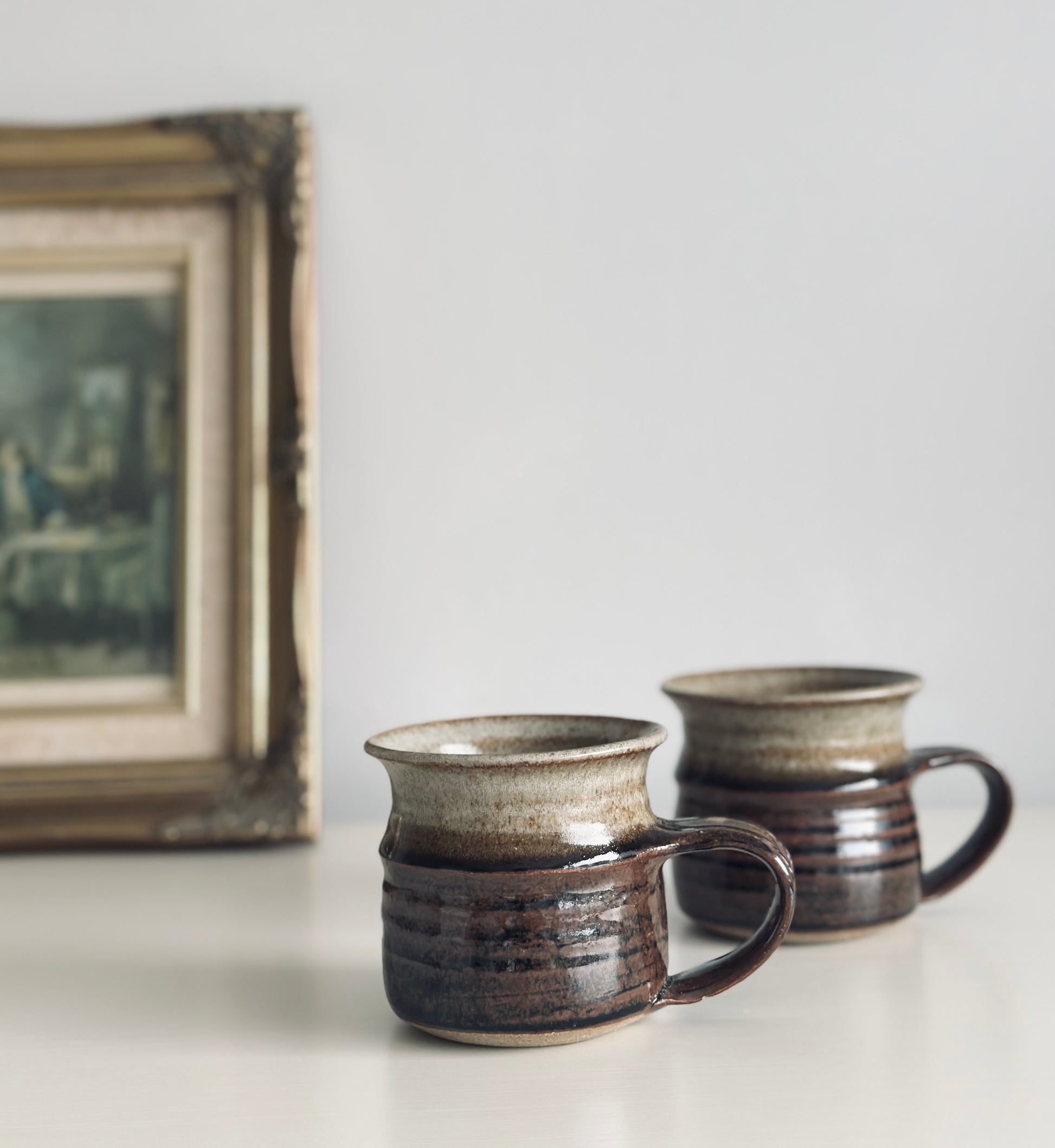 Expertly crafted from high-quality vintage pottery, this set of two brown mugs is a must-have for any kitchen. The timeless design and durable construction make them perfect for everyday use, while the unique vintage aesthetic adds a touch of charm to your drinkware collection.