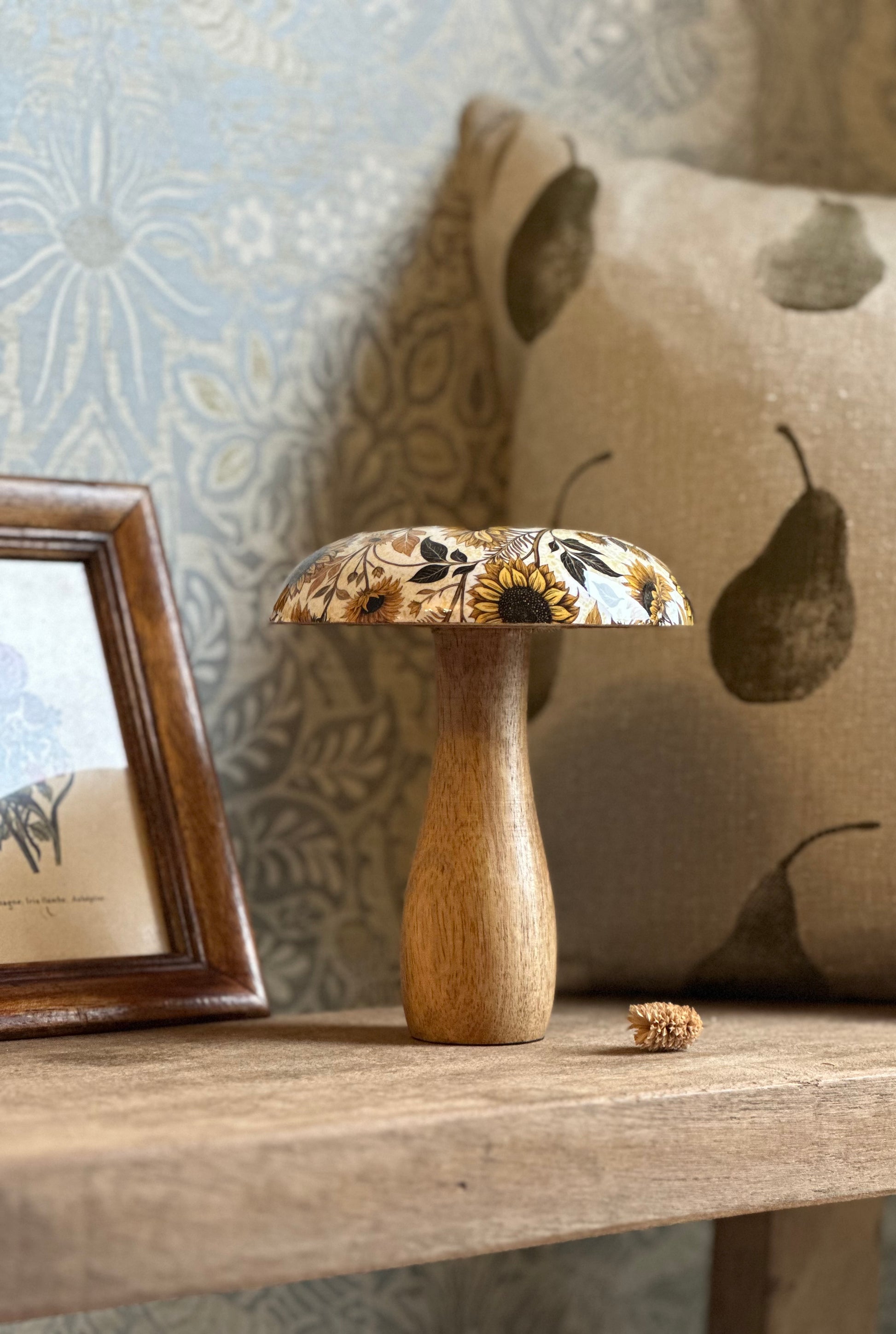 Add a touch of natural elegance to your interior styling with this stylish wooden mushroom decoration.